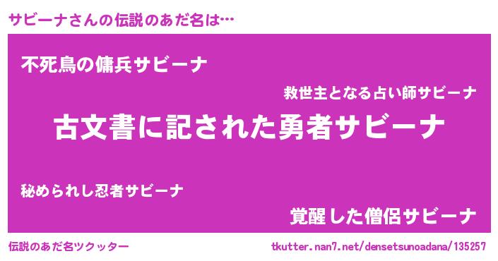| ヒーロー風カッコイイあだ名 | 『ネオサビーナ』『スーパーサビーナ』 |