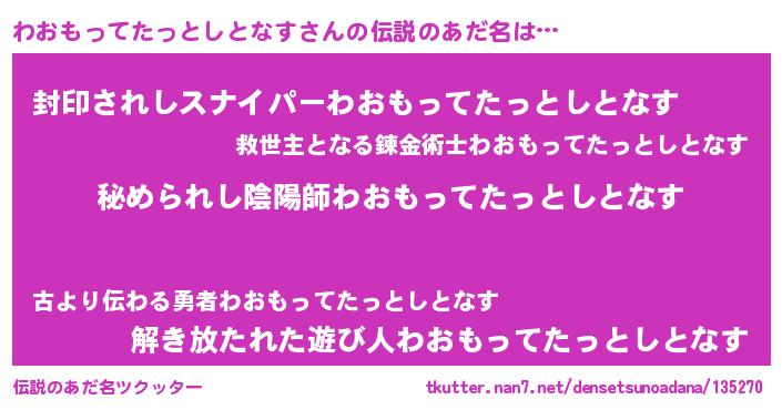 | ヒーロー風カッコイイあだ名 | 『ウルトラわおもってたっとしとなすマン』 |