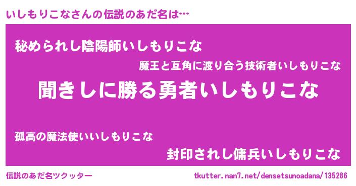 | 男性向けラノベタイトル風あだ名 | 『いしもりこなという概念が存在しない退屈な世界 』 |