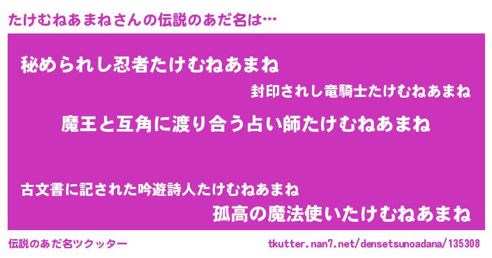| 恥ずかしいあだ名 | 『タケムネアマネデラックス』 |