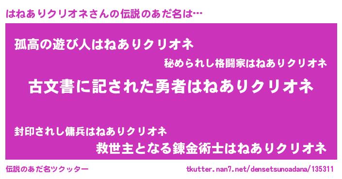 | 意味不明あだ名 | 『自称はねありクリオネ』 |
