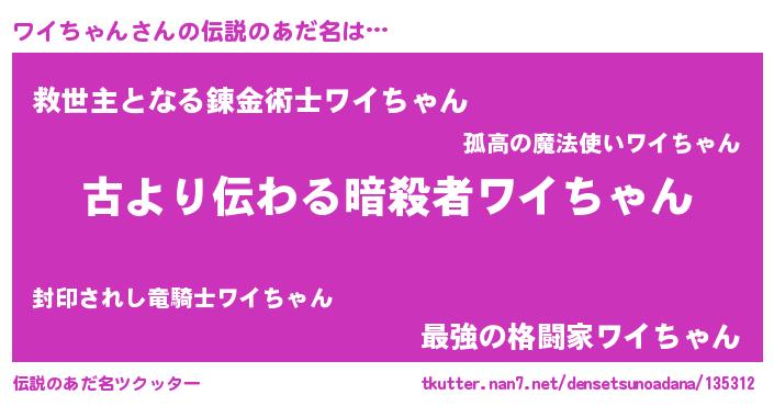 | 胡散臭い通販商品みたいなあだ名 | 『来世でも幸せになれる健康食品…その名も「ワイちゃん」』 |