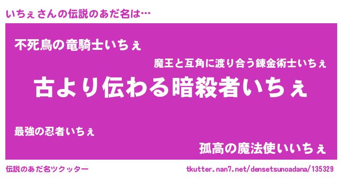 | 意味不明あだ名 | 『永久保存いちぇ』『ペロリンいちぇ』 |