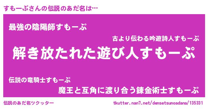 | 意味不明あだ名 | 『自称すもーぷ』『ヨモギ科すもーぷ属』 |
