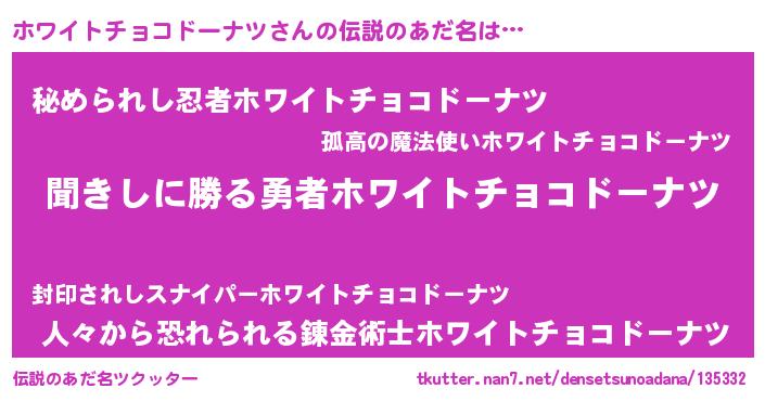 | 男性向けラノベタイトル風あだ名 | 『ホワイトチョコドーナツスレイヤー』 |