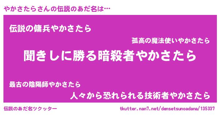 | ヒーロー風カッコイイあだ名 | 『ネオヤカサタラ』『スーパーヤカサタラ』 |