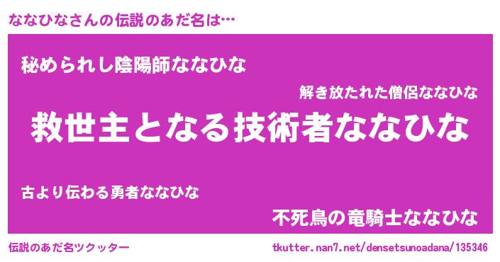 | 男性向けラノベタイトル風あだ名 | 『ノーゲーム・ノーナナヒナ』 |