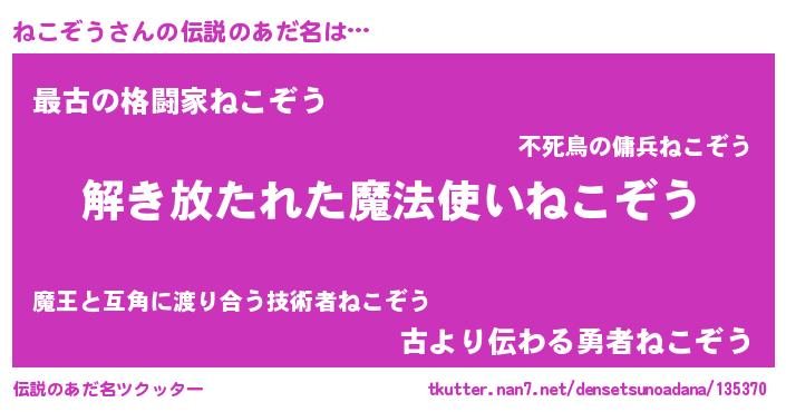 | 欧米人風あだ名 | 『ウサインねこぞう』『マイケルねこぞう』 |
