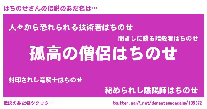 | 意味不明あだ名 | 『とにかく怪しいはちのせ』 |