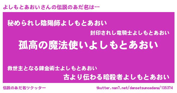 | ヒーロー風カッコイイあだ名 | 『暗黒騎士ヨシ』『ネオヨシモトアオイ』 |