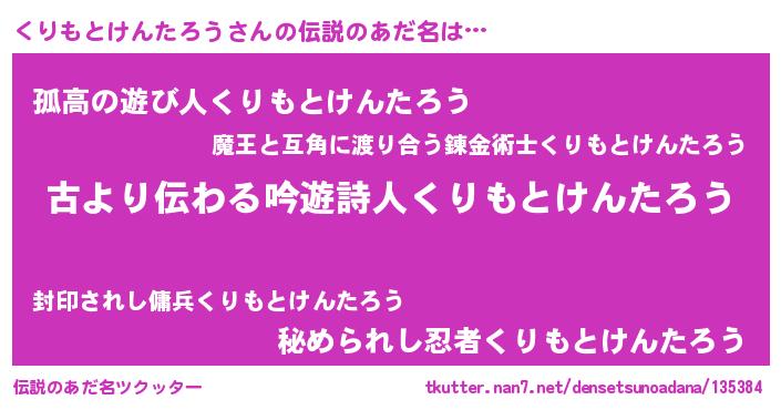 | 男性向けラノベタイトル風あだ名 | 『くりもとけんたろうという概念が存在しない退屈な世界 』 |