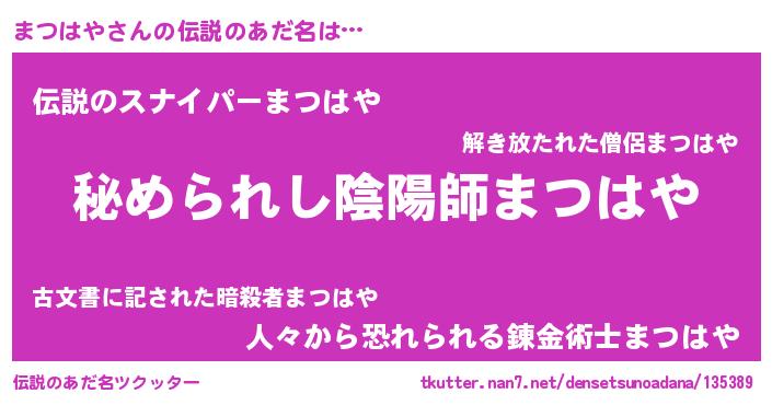 | ファンタジー風あだ名 | 『エターナルマツハヤー』『マツフェル』 |