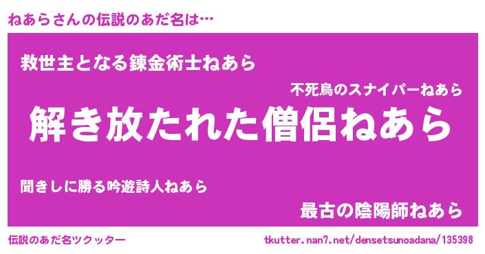 | 胡散臭い通販商品みたいなあだ名 | 『伝統あるネックレス…その名も「ねあら」』 |