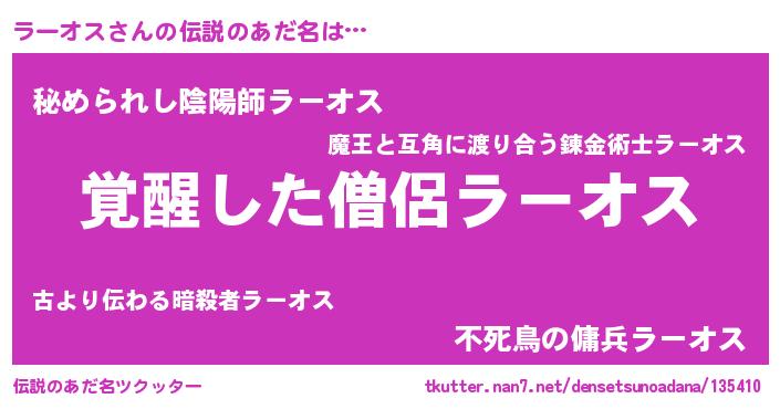 | ヒーロー風カッコイイあだ名 | 『幻影騎士ラー』『仮面ラーダー』 |