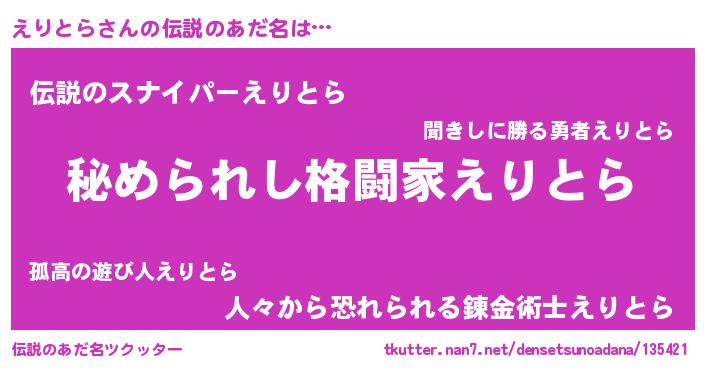 | ヒーロー風カッコイイあだ名 | 『ウルトラえりとらマン』『ネオエリトラ』 |