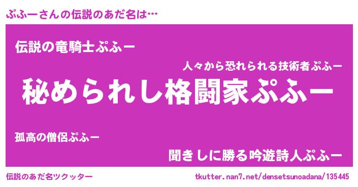 | 男性向けラノベタイトル風あだ名 | 『やはりぷふーの青春ラブコメはまちがっている 』 |