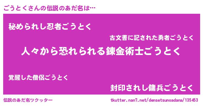 | ポケモン風あだ名 | 『ゴックウザ』『ゴウトダネ』 |