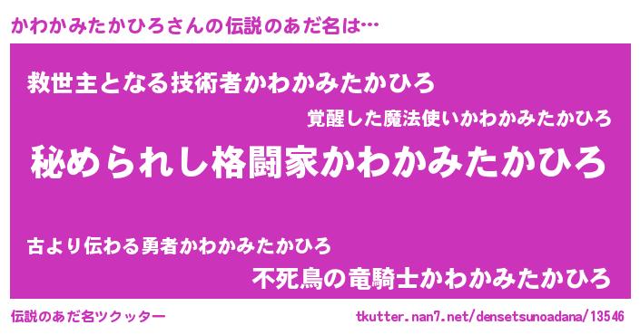 | ファンタジー風あだ名 | 『エターナルカワカミタカヒロー』 |