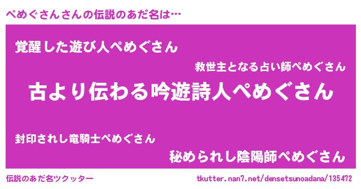 | ヘコむあだ名 | 『ペめぐさん(笑)』『ペめぷりん』 |