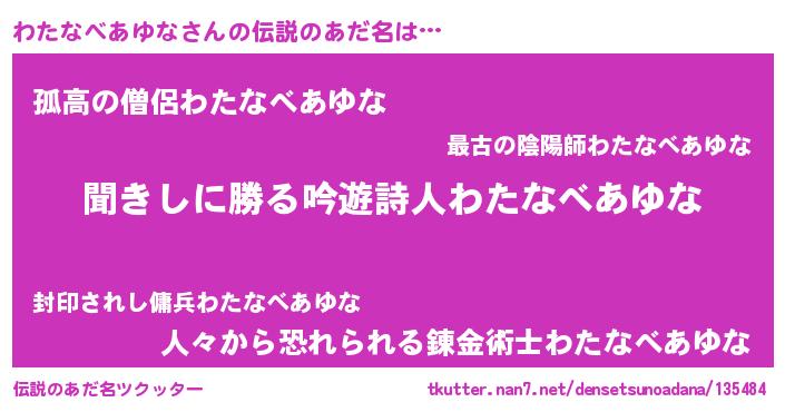 | 胡散臭い通販商品みたいなあだ名 | 『絶対に幸福をもたらす招き猫…その名も「わたなべあゆな」』 |