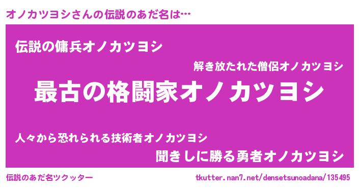 | 男性向けラノベタイトル風あだ名 | 『この素晴らしい世界にオノカツヨシを!』 |