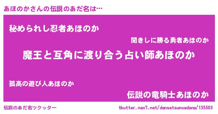 | ヒーロー風カッコイイあだ名 | 『愛の使者あほのか』『仮面アホダー』 |
