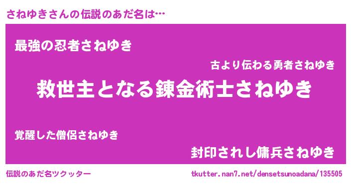 | 男性向けラノベタイトル風あだ名 | 『ノーゲーム・ノーサネユキ』 |