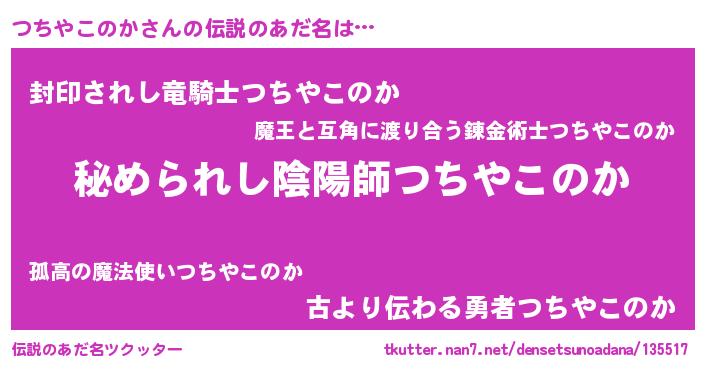 | 意味不明あだ名 | 『自称つちやこのか』 |