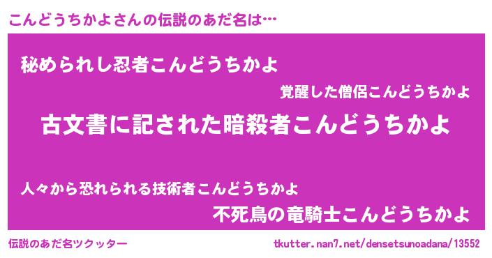 | 意味不明あだ名 | 『自称こんどうちかよ』 |