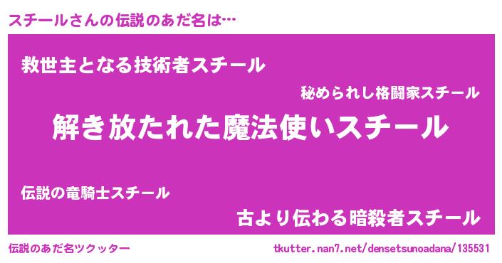| ヘコむあだ名 | 『スチお』『スチール(小並感)』 |