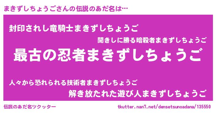 | ヒーロー風カッコイイあだ名 | 『ウルトラ戦士マキズシチョウゴ』 |
