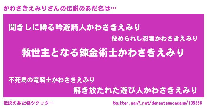| ヒーロー風カッコイイあだ名 | 『慈愛の使者かわさきえみり』 |