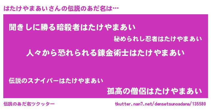 | ヒーロー風カッコイイあだ名 | 『正義の使者はたけやまあい』 |
