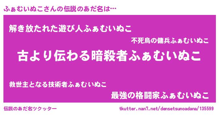 | 意味不明あだ名 | 『永久保存ふぁむいぬこ』 |