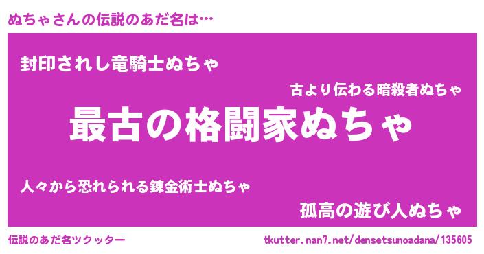 | 2回繰り返すあだ名 | 『ぬぬちち』『つらつら』『ぬちぬち』 |