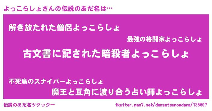 | 意味不明あだ名 | 『住所不定無職よっこらしょ(43歳)』 |