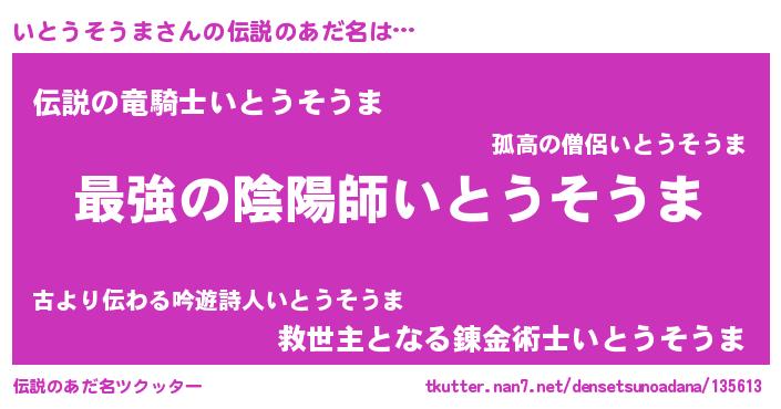 | ヒーロー風カッコイイあだ名 | 『仮面イトダー』『スーパーイトウソウマ』 |