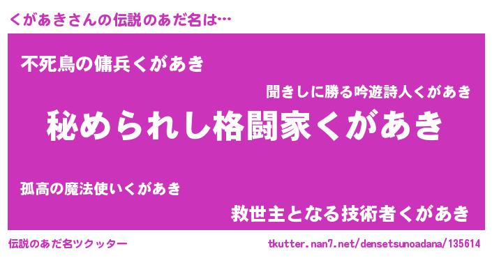 | 胡散臭い通販商品みたいなあだ名 | 『ガンによく効く高麗人参…その名も「くがあき」』 |