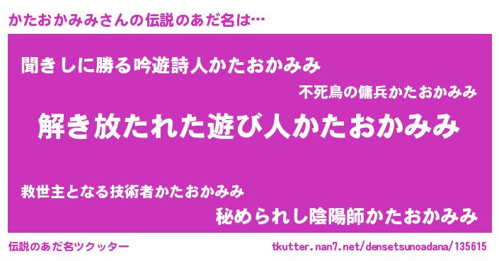 | ヒーロー風カッコイイあだ名 | 『最強戦士カタオカミミ』『魔戒騎士カタ』 |