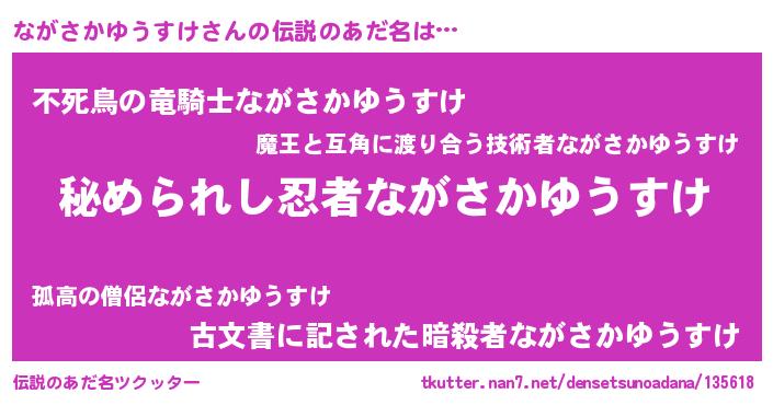 | 意味不明あだ名 | 『自称ながさかゆうすけ』 |