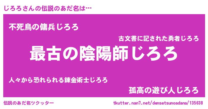 | ヘコむあだ名 | 『豆乳』『じろふぇ~』『じろ太郎』 |