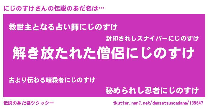 | 男性向けラノベタイトル風あだ名 | 『にじのすけに滅ぼされるだけの簡単なお仕事です』 |