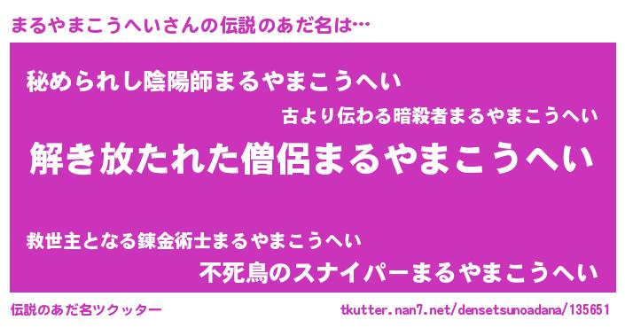 | 意味不明あだ名 | 『住所不定無職まるやまこうへい(65歳)』 |
