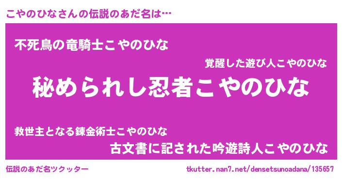 | ファンタジー風あだ名 | 『エターナルコヤノヒナー』『コヤフェル』 |