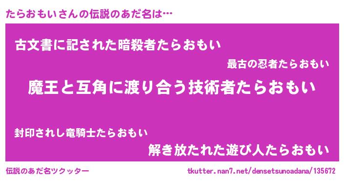 | ポケモン風あだ名 | 『メロタッラ』『タラキング』 |