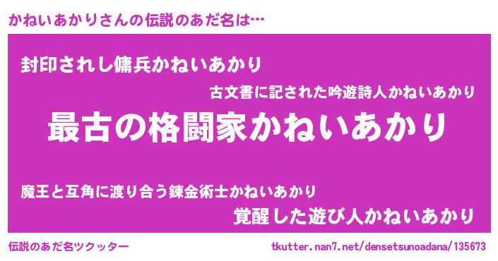 男性向けラノベタイトル風あだ名 | 『転生したらかねいあかりだった件』 |