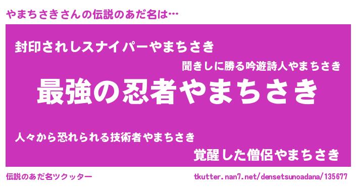 | 意味不明あだ名 | 『住所不定無職やまちさき(14歳)』 |