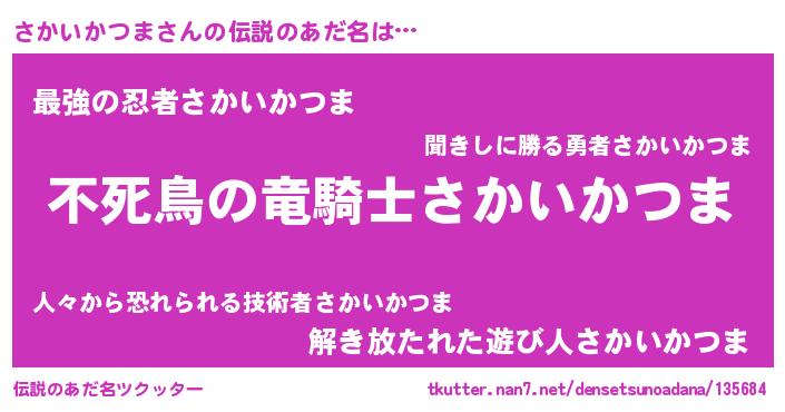 | ヒーロー風カッコイイあだ名 | 『スーパーサカイカツマ』『天弓騎士サカ』 |