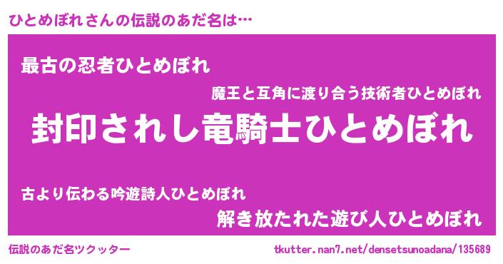 | 意味不明あだ名 | 『住所不定無職ひとめぼれ(13歳)』 |