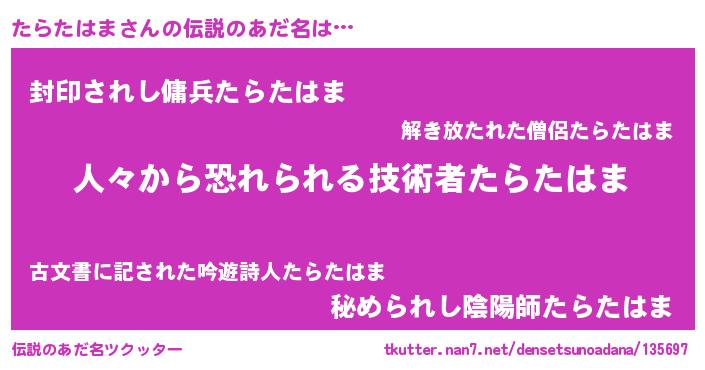 | 胡散臭い通販商品みたいなあだ名 | 『100人中100人が認めたマグネット磁石…その名も「たらたはま」』 |